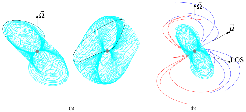 分析全相位射电辐射脉冲星B1929+10的偏振辐射信号,进行磁偶极场的旋转矢量模型拟合,获取该脉冲星的磁倾角α和视线角ζ,它们分别是55°.62和109°.9研究人员构建和研究该脉冲星的3维磁层结构和辐射几何。如图3所示,发现该脉冲星的磁层结构随着磁层高度变大呈现方向性扭曲,和出现一团磁力线在低海拔区域聚集在一起。磁层的这些结构特征很好地解释了该脉冲星全相位射电辐射特征。全相位射电辐射脉冲星辐射,挑战了脉冲星经典的理论模型,促进了天文学家对脉冲星辐射新的理解和推进了脉冲星理论模型向新的方向发展。该研究成果已于2025年8月27日发表在国际天文顶级期刊Astronomy and Astrophysics上。