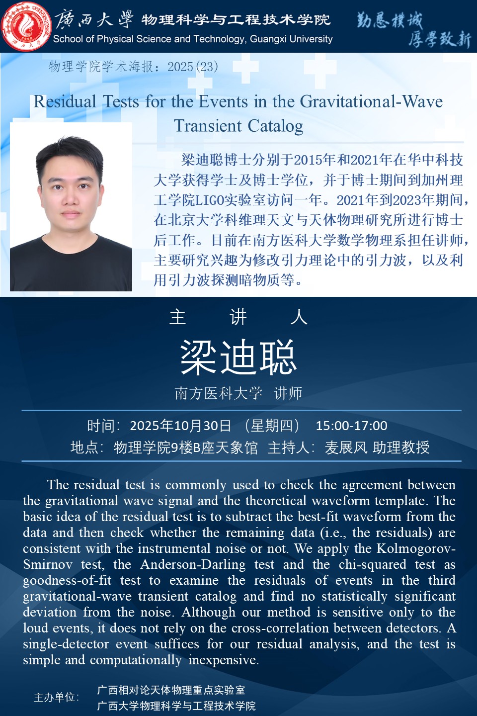染迪聪:Residual Tests for the Events in the Gravitational-Wave Transient Catalog